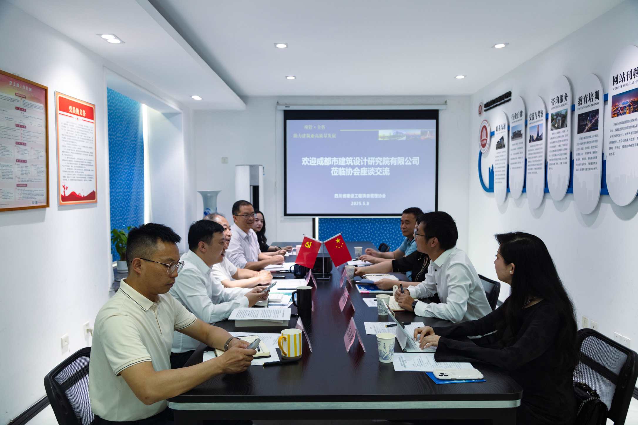 2025年5月8日,成都市建筑设计研究院有限公司(以下简称“市建筑院”)总建筑师曾丽雯,全过程工程咨询事业部副总经理尹福绵,全过程工程咨询事业部项目总监陈彬,技术发展部部长陈佩佩一行到访四川省建设工程项目管理协会座谈交流。